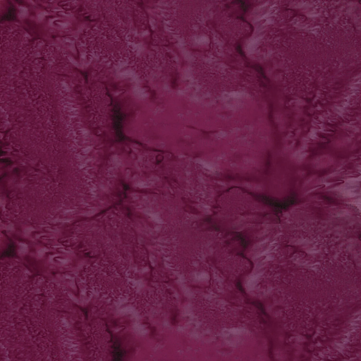 This fabric showcases a rich burgundy hue with a watercolor batik design, creating a dynamic and textured appearance. The intricate patterns flow seamlessly across the fabric, providing depth and visual interest, making it ideal for a variety of crafting and sewing projects.