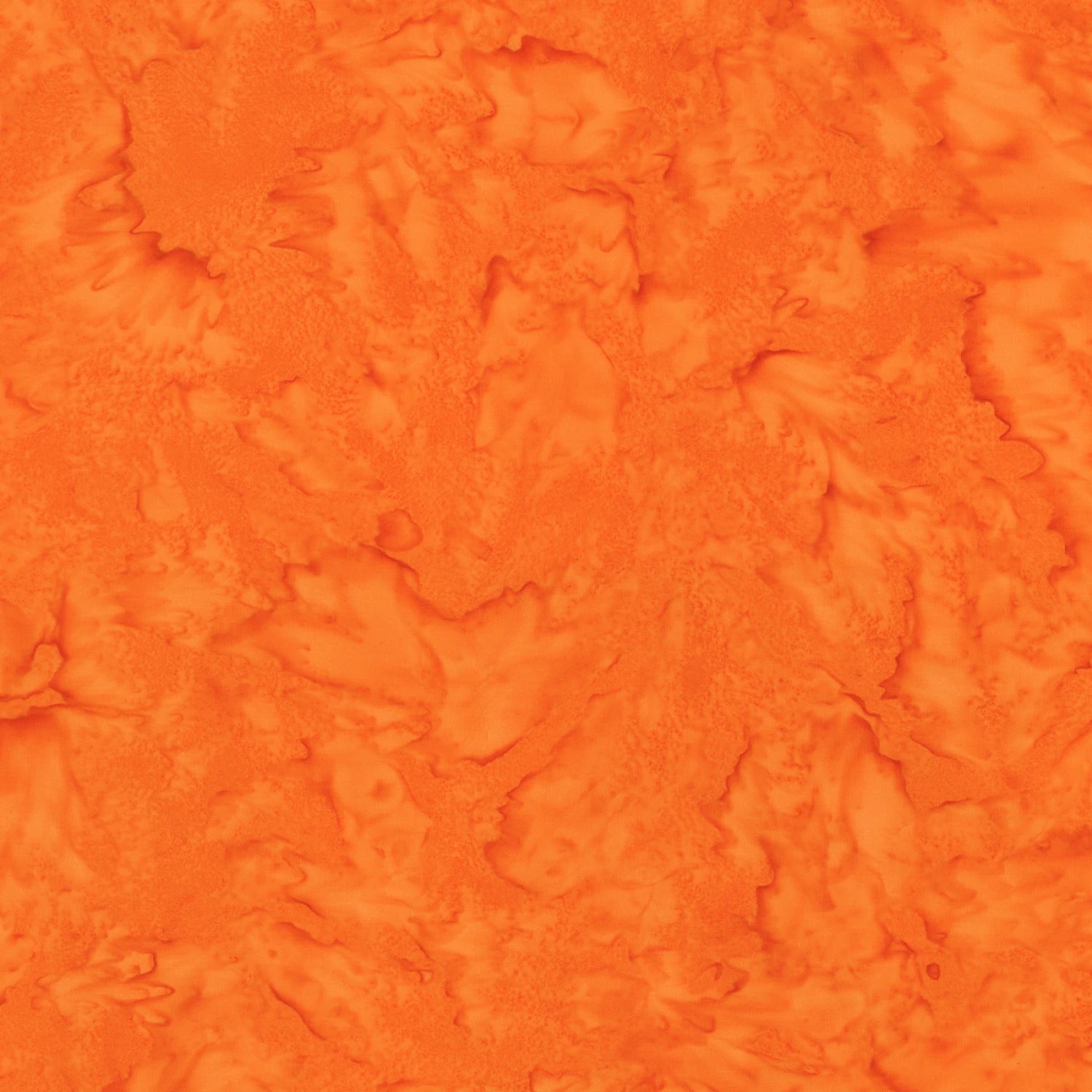 This vibrant fabric showcases a rich, hand-dyed batik design in a warm pumpkin hue, with intricate patterns that mimic natural textures, offering a unique and artistic flair to any project. The fabric's texture and color variations provide a dynamic visual appeal, making it perfect for creating standout pieces in quilting, apparel, or home decor.