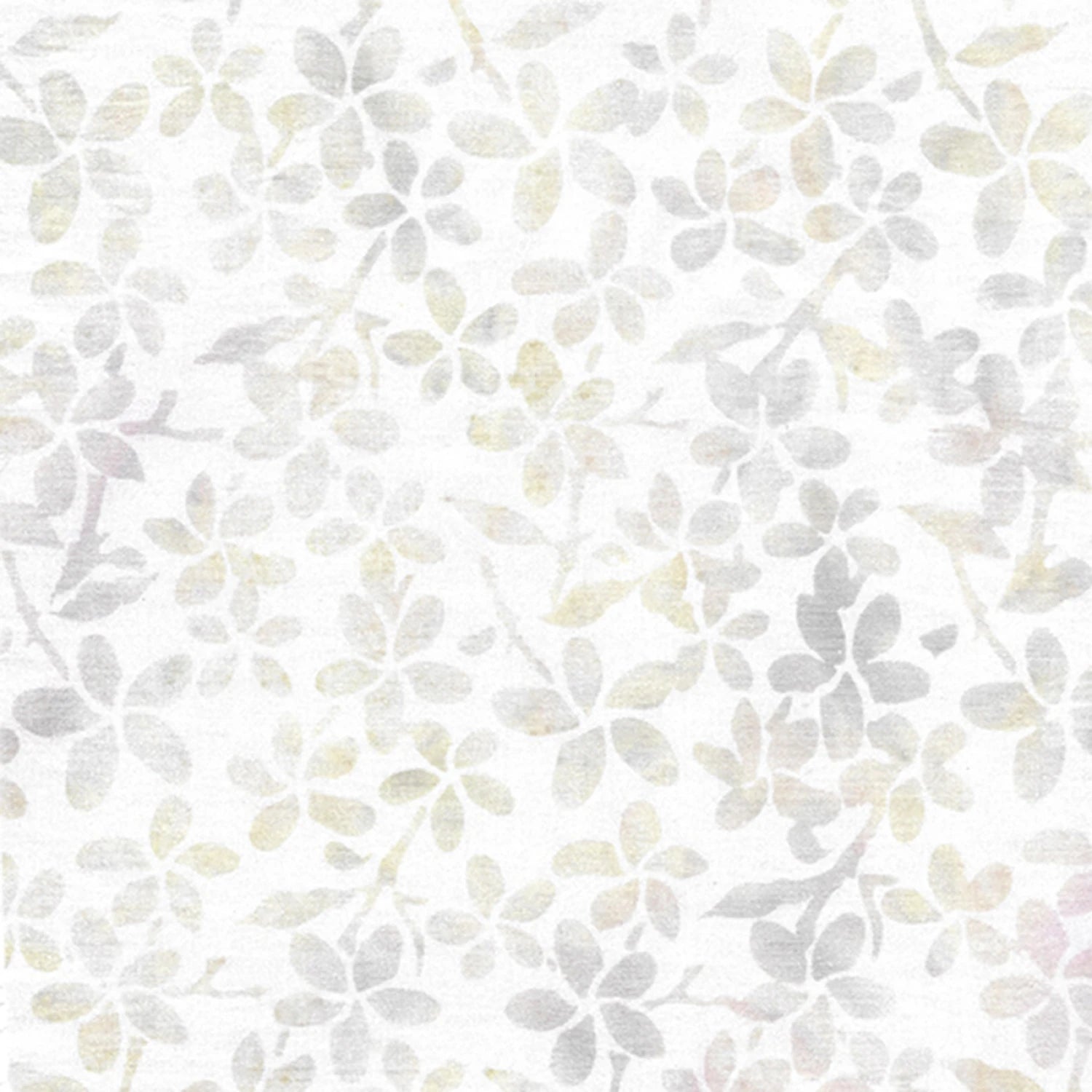 This fabric features a delicate and elegant design with a soft, watercolor-like floral pattern in muted tones of grey, beige, and light yellow, creating a serene and sophisticated look. The flowers are scattered across a light background, giving the fabric a subtle yet charming aesthetic that is perfect for projects requiring a gentle touch of nature.