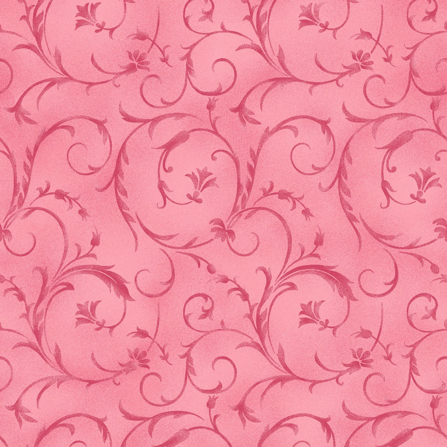 This exquisite fabric features a delicate design of intertwining swirls and floral motifs in a soft pink hue, creating a romantic and elegant backdrop. The pattern is subtle yet intricate, with each swirl and flower seamlessly blending into the next, providing a beautiful texture that enhances any project it's used in. Ideal for quilting, backing, or any project requiring a wide fabric, its generous width ensures ease of use and minimizes seams.