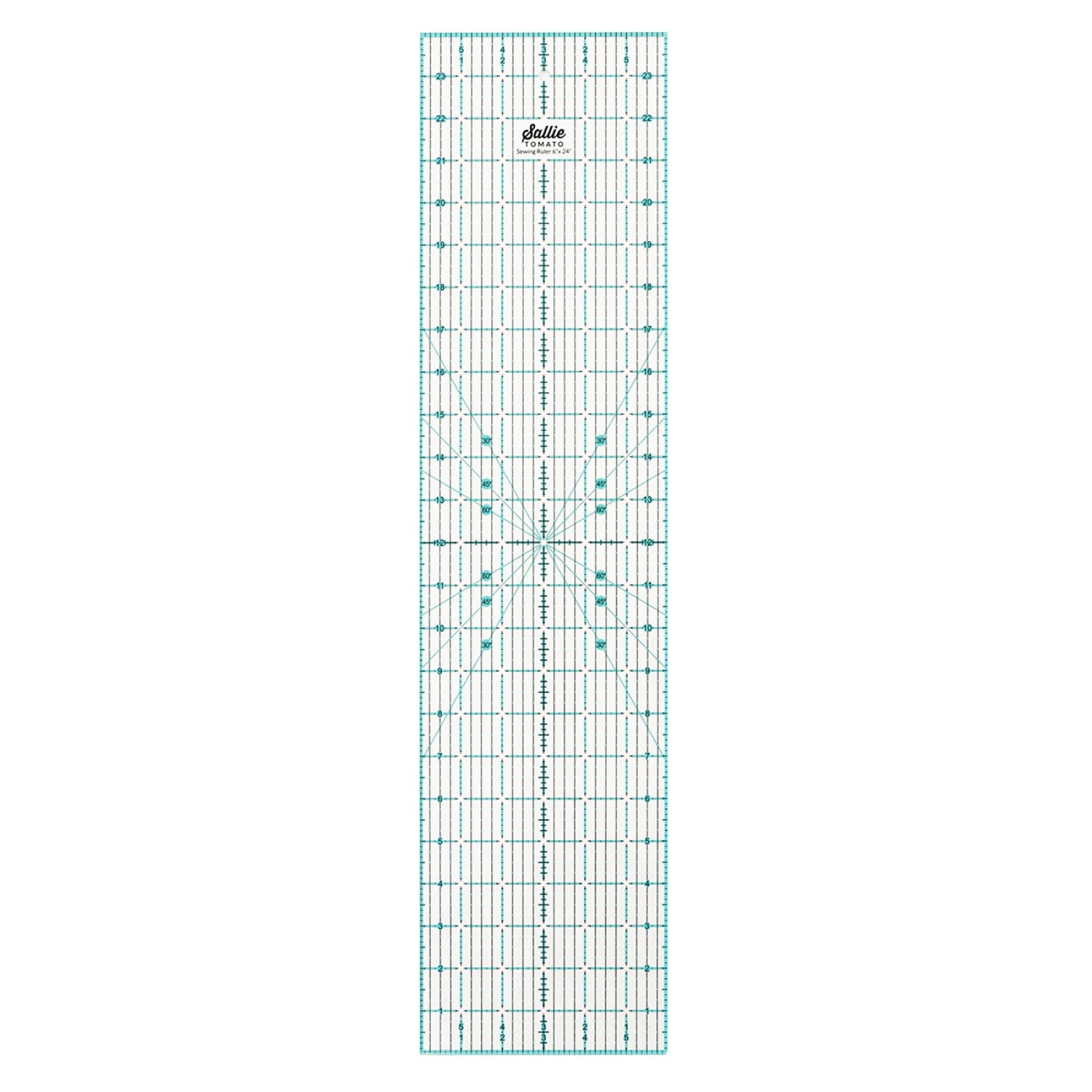 This acrylic ruler is great for all of your sewing and crafting projects. Use this handy ruler, with a thickness of 1/8 inch, for marking bag corners, placement marks, angles, and more. The see-through design allows for precision and accuracy, while the ruler also features a 30, 60, and two 45-degree angles, perfect for your favorite projects. With its robin egg blue lines, this ruler ensures easy visibility on light, dark, and medium-toned fabrics.